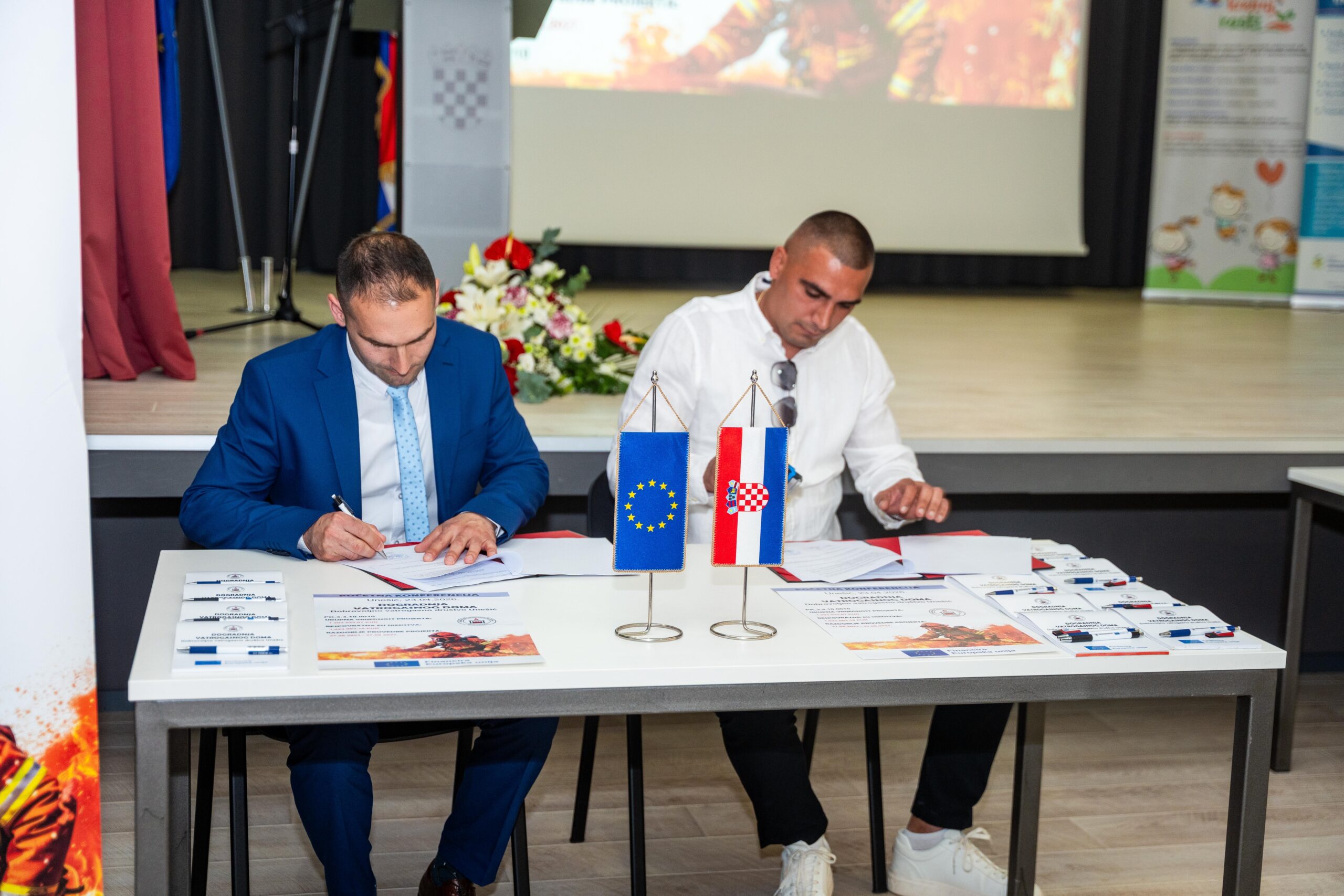 Ugovor o dogradnji vatrogasnog doma DVD-a Unešić potpisali su načelnik Općine Unešić Marko Parat i odgovorna osoba društva SALADO d.o.o. Juraj Pavlović.
