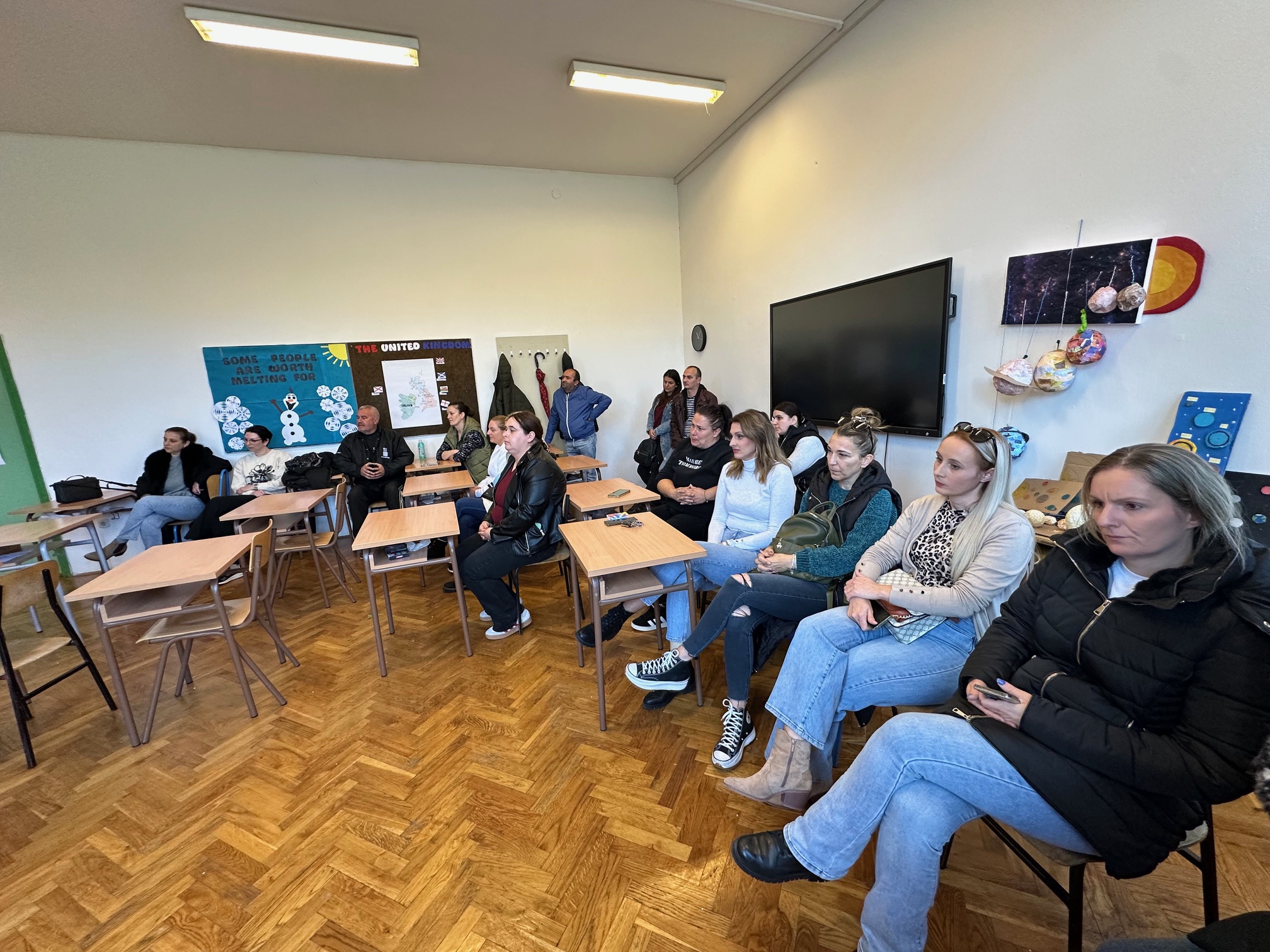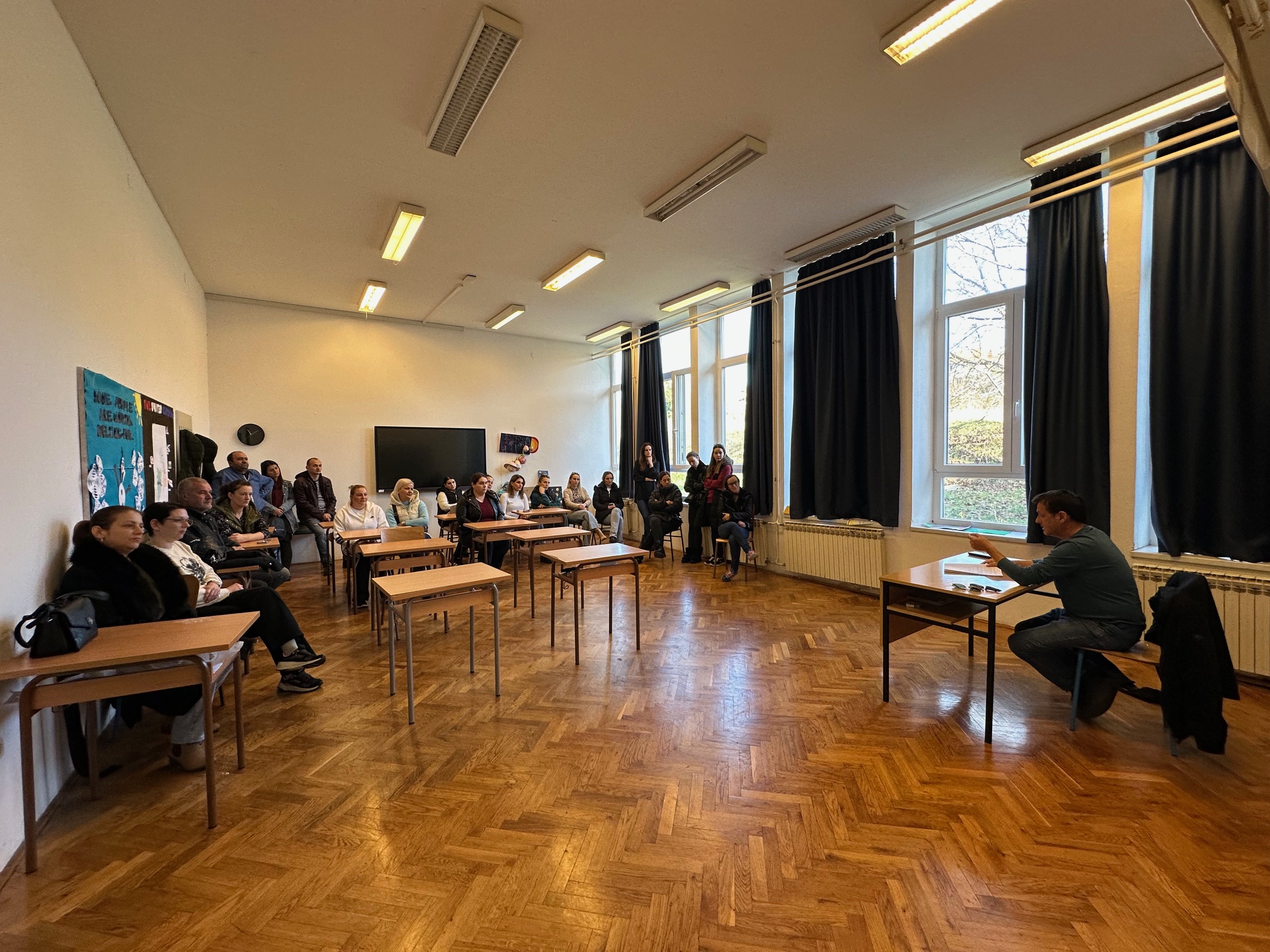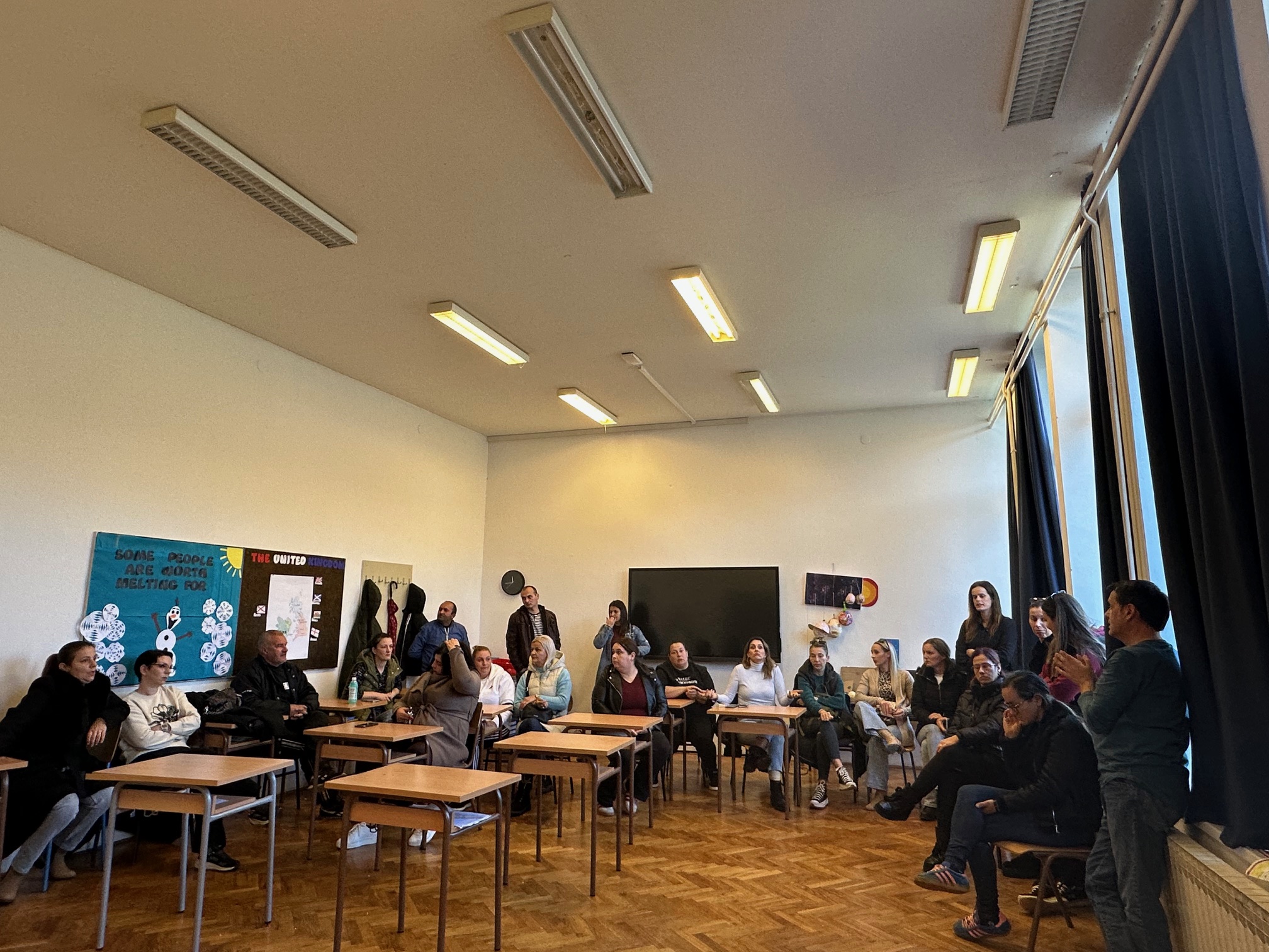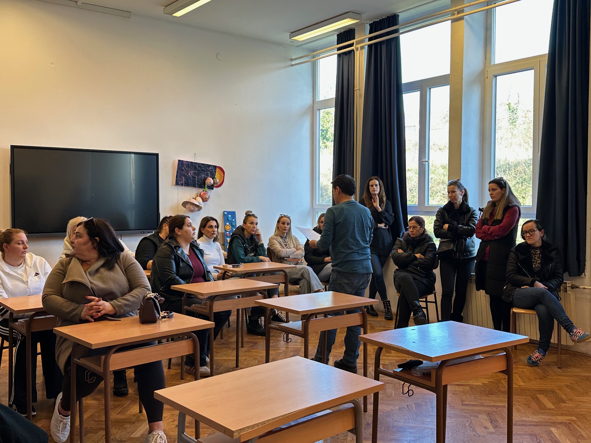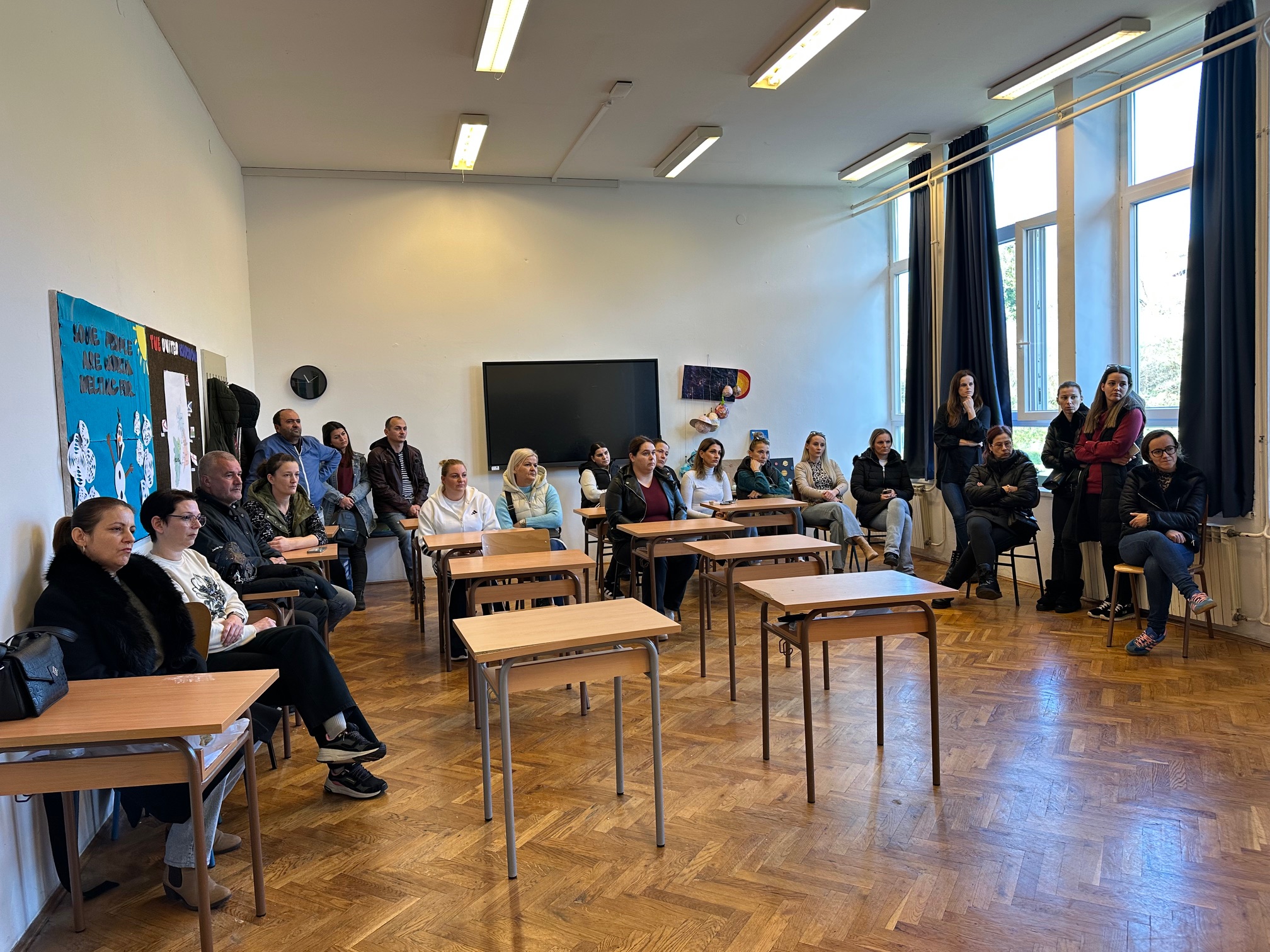 Redom su roditelji nabrajali kako škola prokišnjava, nema grijanja, djeca sjede u jaknama, rupe su u stropu, u podu, učionice vlažne, u sanitarnim čvorovima ne samo da nema ispravnih špina nego niti wc papira i ubrusa!