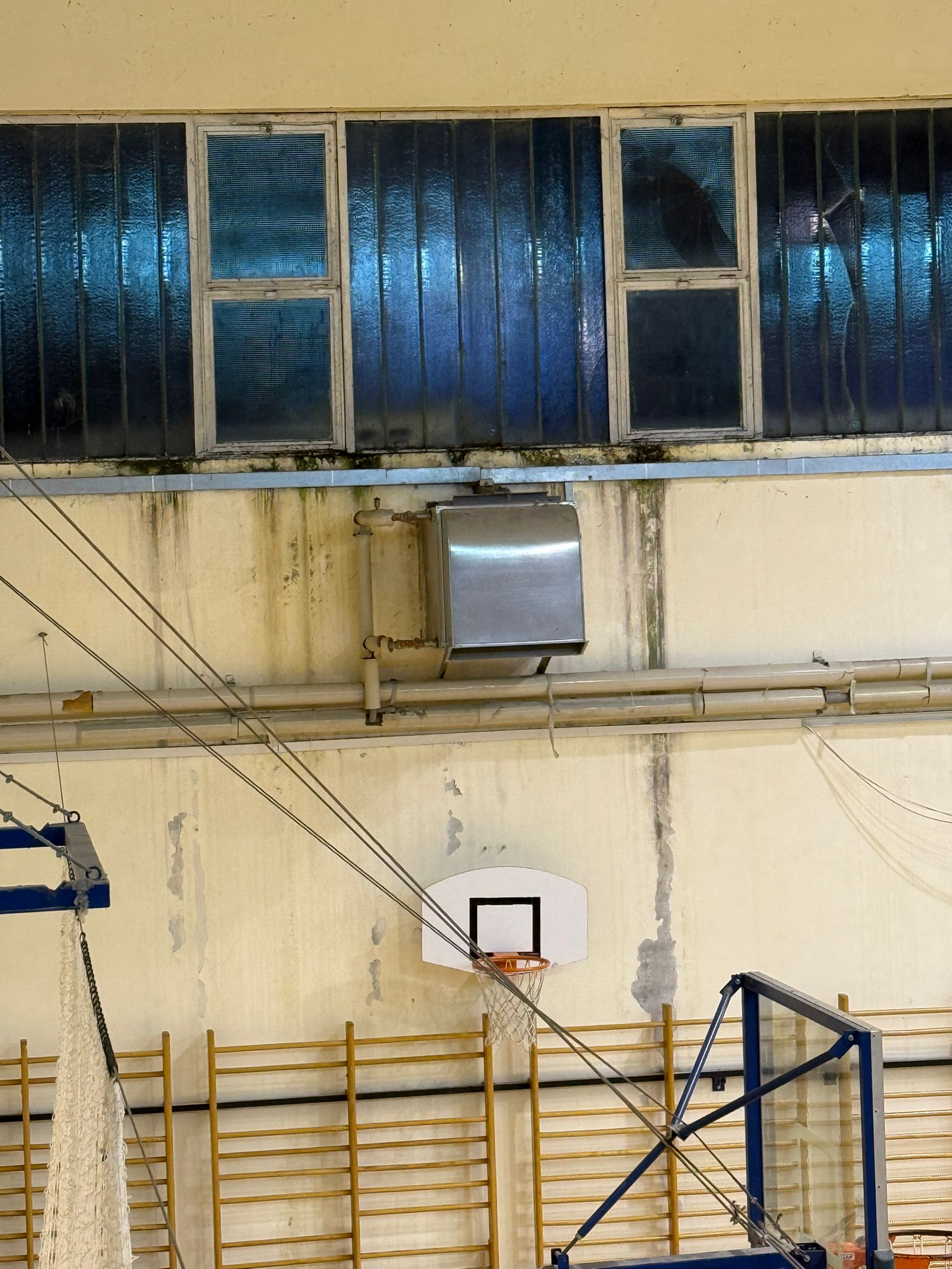 Školska dvorana matične škole u Drnišu ima godinama razbijena stakla, koja padaju po derutnom parketu, dvorana se ne čisti, nema grijanja, u dvorani su dva stupnja celzijusa. Energetsku obnovu nitko ne spominje.