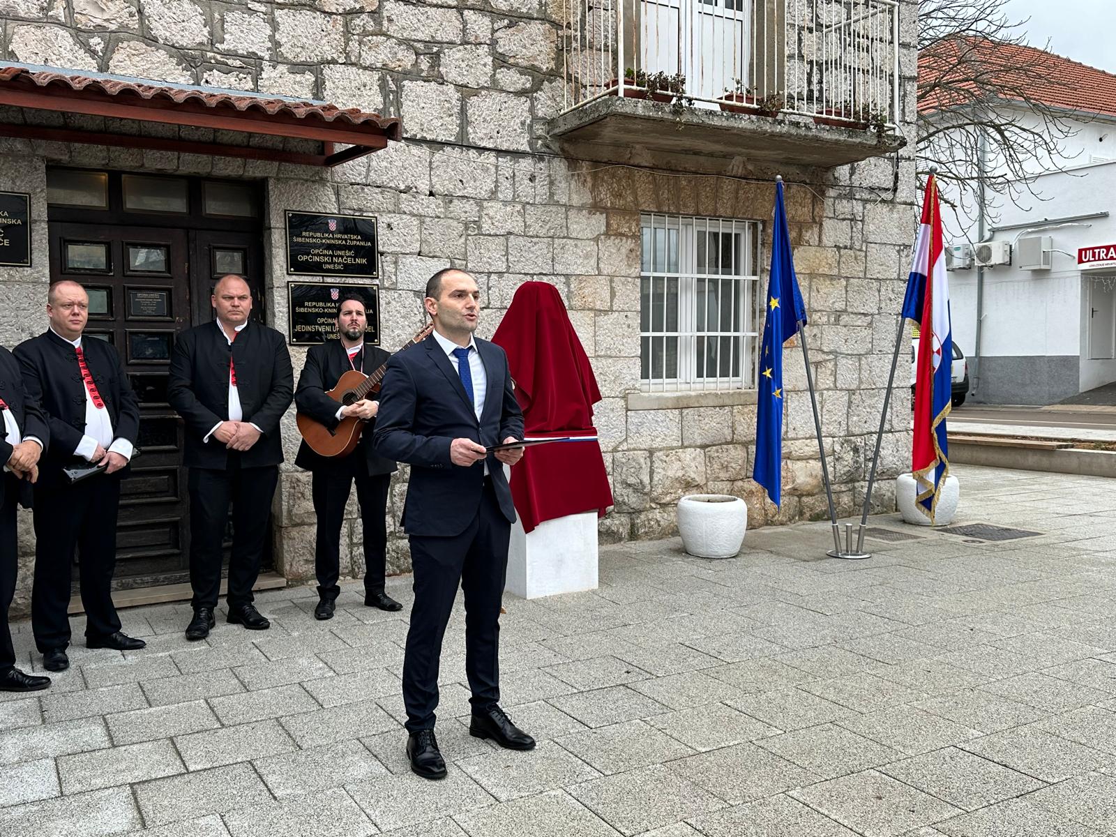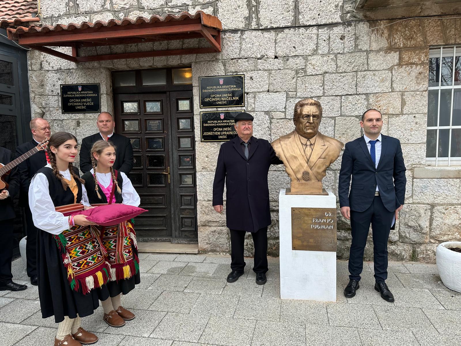 U Unešiću, na trgu ispred Doma kulture i Općinske uprave danas je obilježena 34. obljetnica međunarodnog priznanja otkrivanjem biste prvom predsjedniku Hrvatske dr. Franji Tuđmanu,