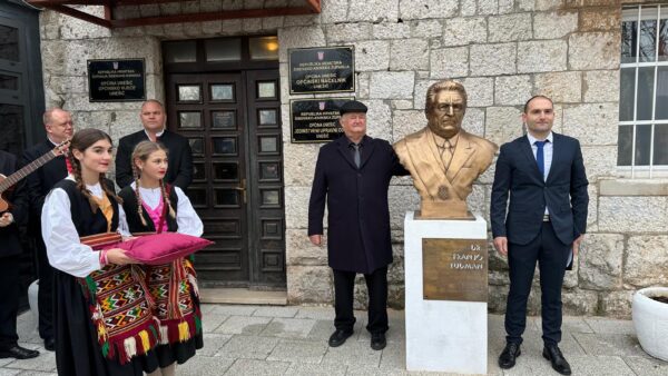 Danas, 15. siječnja, na dan koji je zauvijek upisan u povijest hrvatskoga naroda kao dan međunarodnog priznanja Republike Hrvatske, stojimo pred bistom čovjeka čije je ime postalo sinonim hrvatske slobode i državnosti, a to je dr. Franjo Tuđman.